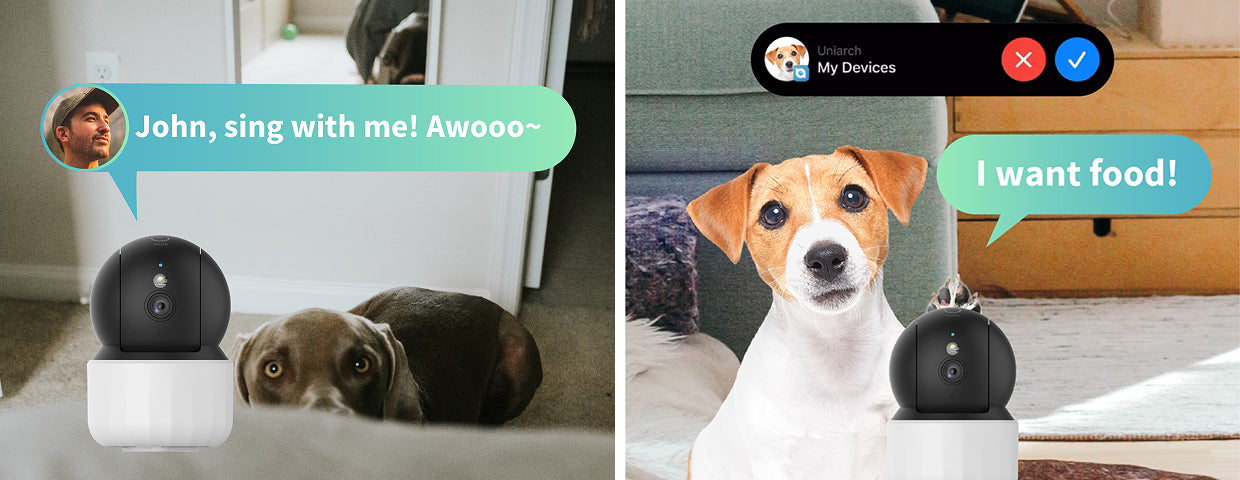 Jouez et communiquez avec vos animaux, où que vous soyez. Ils peuvent même vous “appeler” en appuyant sur le bouton Action Touch !