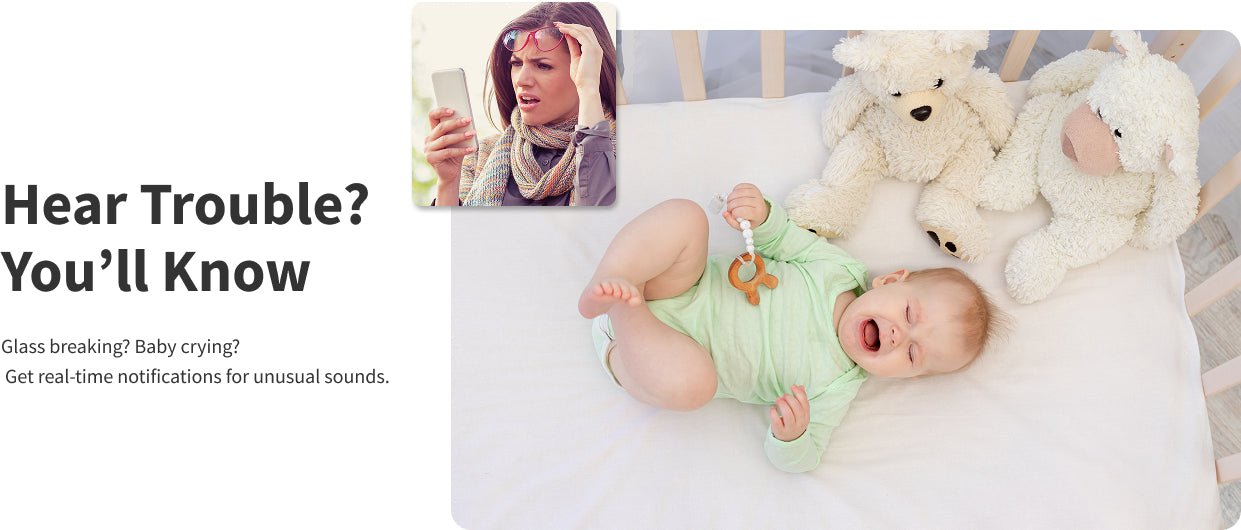 notifications instantanées pour bébé qui pleure ou verre qui se casse.